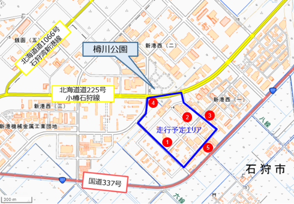 北海道運輸局から車両の自動走行や近接・遠隔監視での運転操作が可能となるように保安基準緩和認定を受け、北海道警察から自動走行ロボットの公道(車道)実証実験に関する道路使用許可を取得し、石狩市の協力を得て実施しています。
