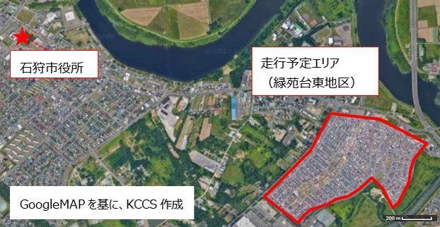 北海道石狩市緑苑台東地区の一部エリア(住宅街)を走行します(図3)。なお、車道実証にあたっては、国土交通省北海道運輸局から保安基準緩和認定を受け、北海道警察から道路使用許可を取得し、石狩市の協力を得て実施しています。